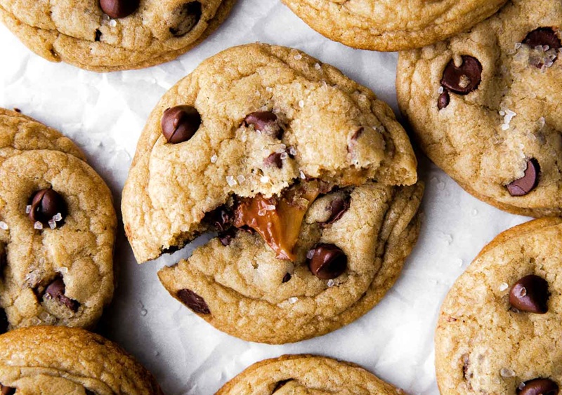 יש עוגיות שברגע שמוציאים אותן מהתנור כבר ברור שלא יישאר מהן הרבה כעבור זמן קצר. בעזרת המתכון הבא תוכלו להכין פינוק עשיר ומפתיע שהוא בדיוק מסוג העוגיות האלה: רכות ונימוחות במרכז, עם שוקולד צ'יפס בכל ביס והפתעה מתוקה של קרמל שמסתתר בפנים. שילוב המרקמים – בצק עשיר, שוקולד נמס ולב קרמלי – יוצר עוגיות שקשה מאוד להפסיק לאכול מהן, והן נעלמות כמעט תמיד מיד אחרי האפייה.